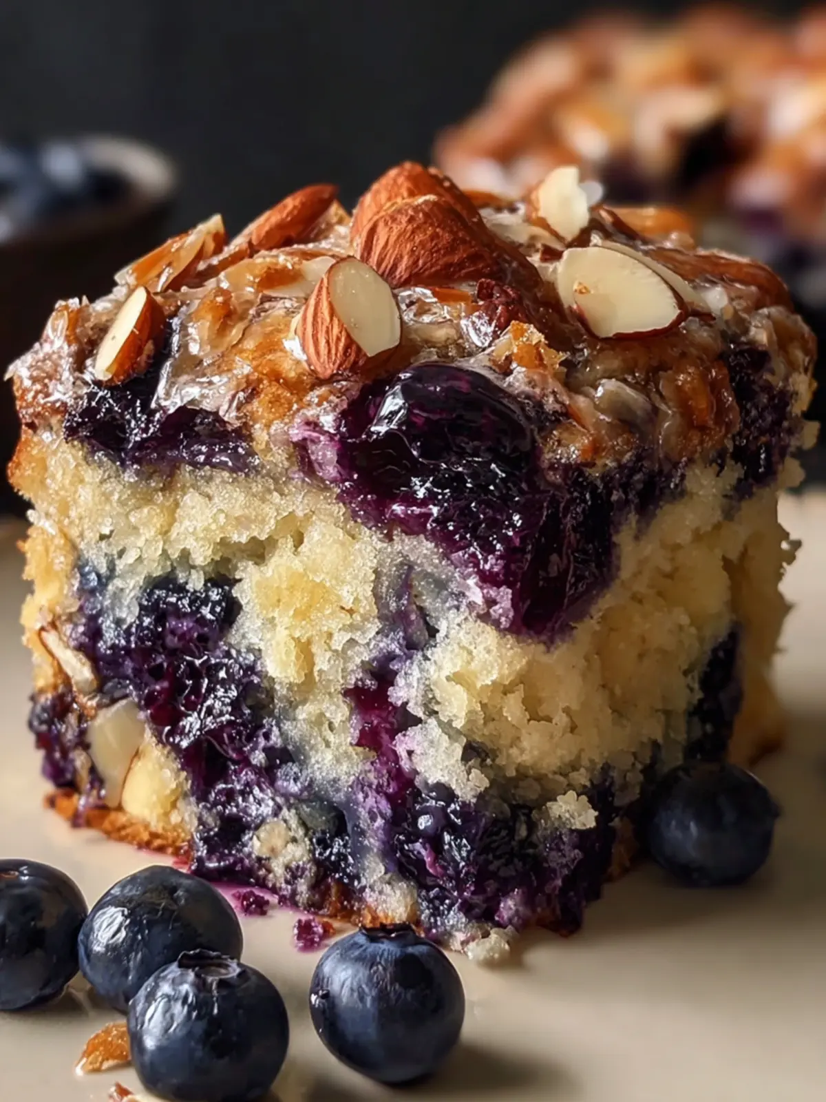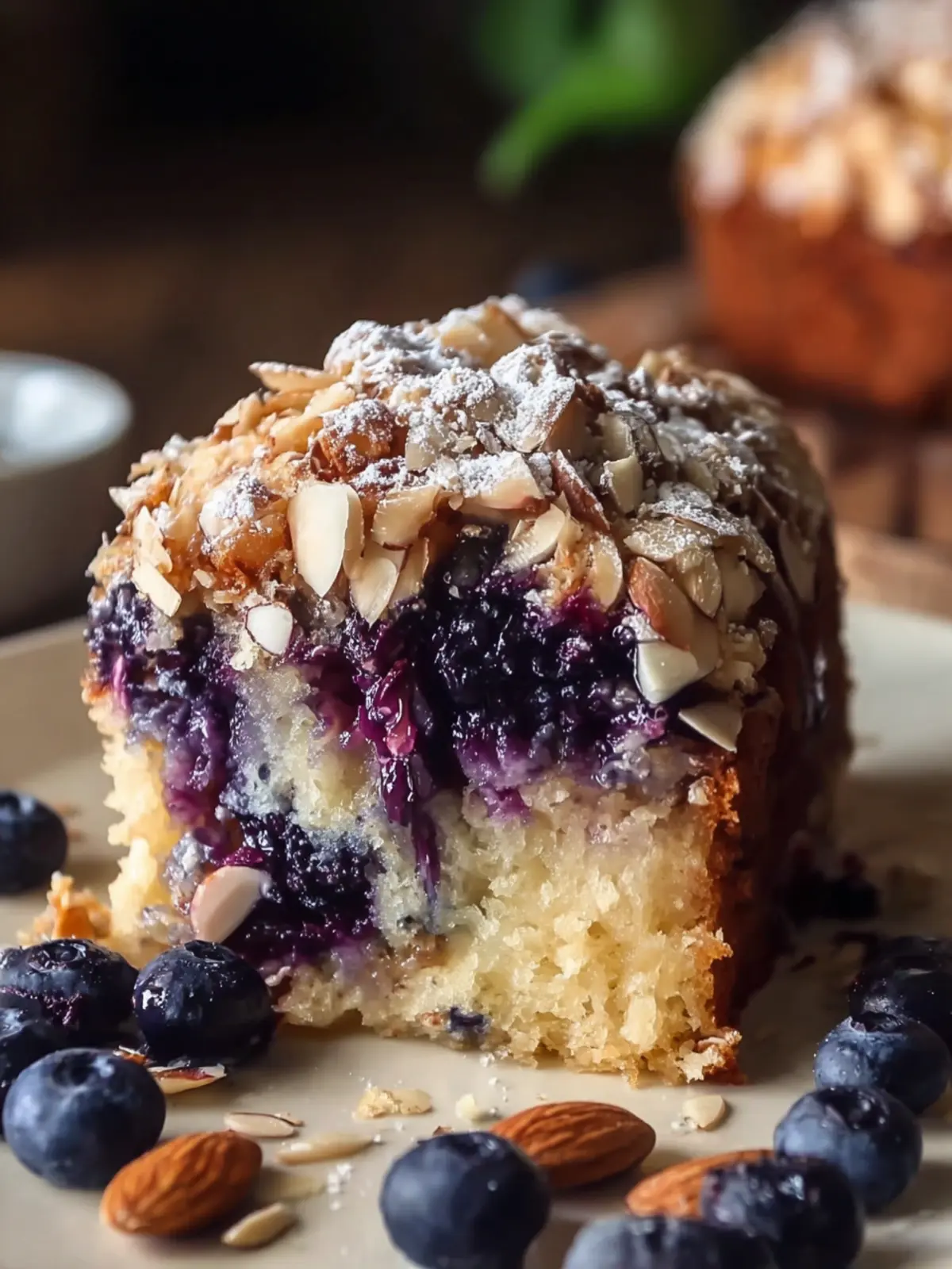 Coffee or Tea: The rich almond flavor and juicy blueberries harmonize beautifully with a cup of freshly brewed coffee. A mild chai or a fruity herbal tea can also complement the cake’s sweetness.