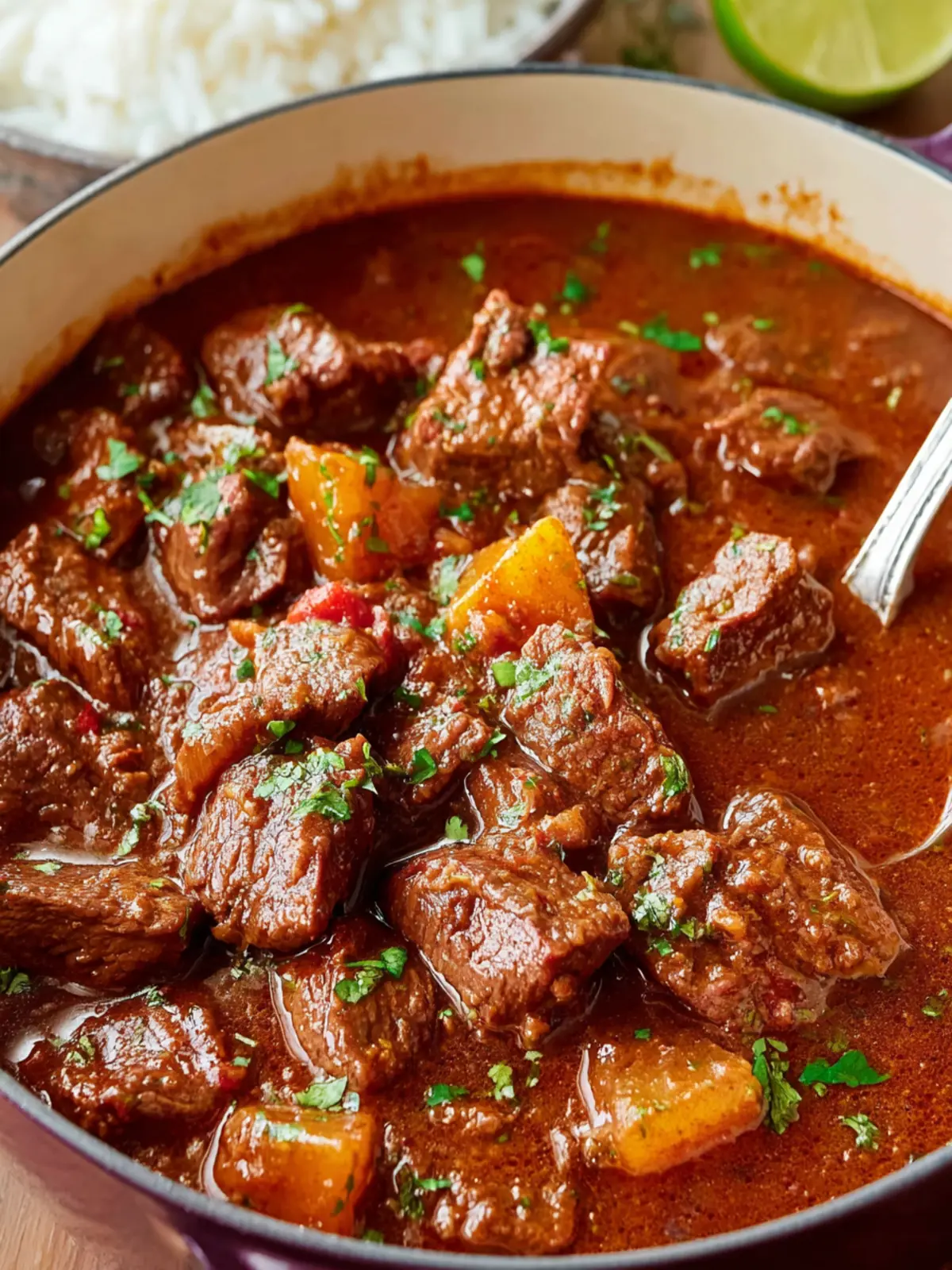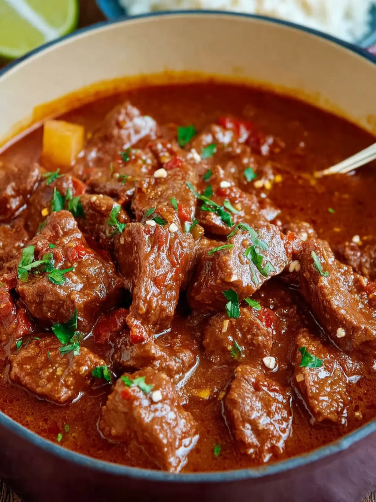 Rich Flavor Profile: The slow cooking process melds together tender chunks of beef with spices like cumin, oregano, and paprika, creating a deep richness that warms the soul. Every bite delivers a taste of comfort, reminiscent of cozy family gatherings and lazy Sunday afternoons.