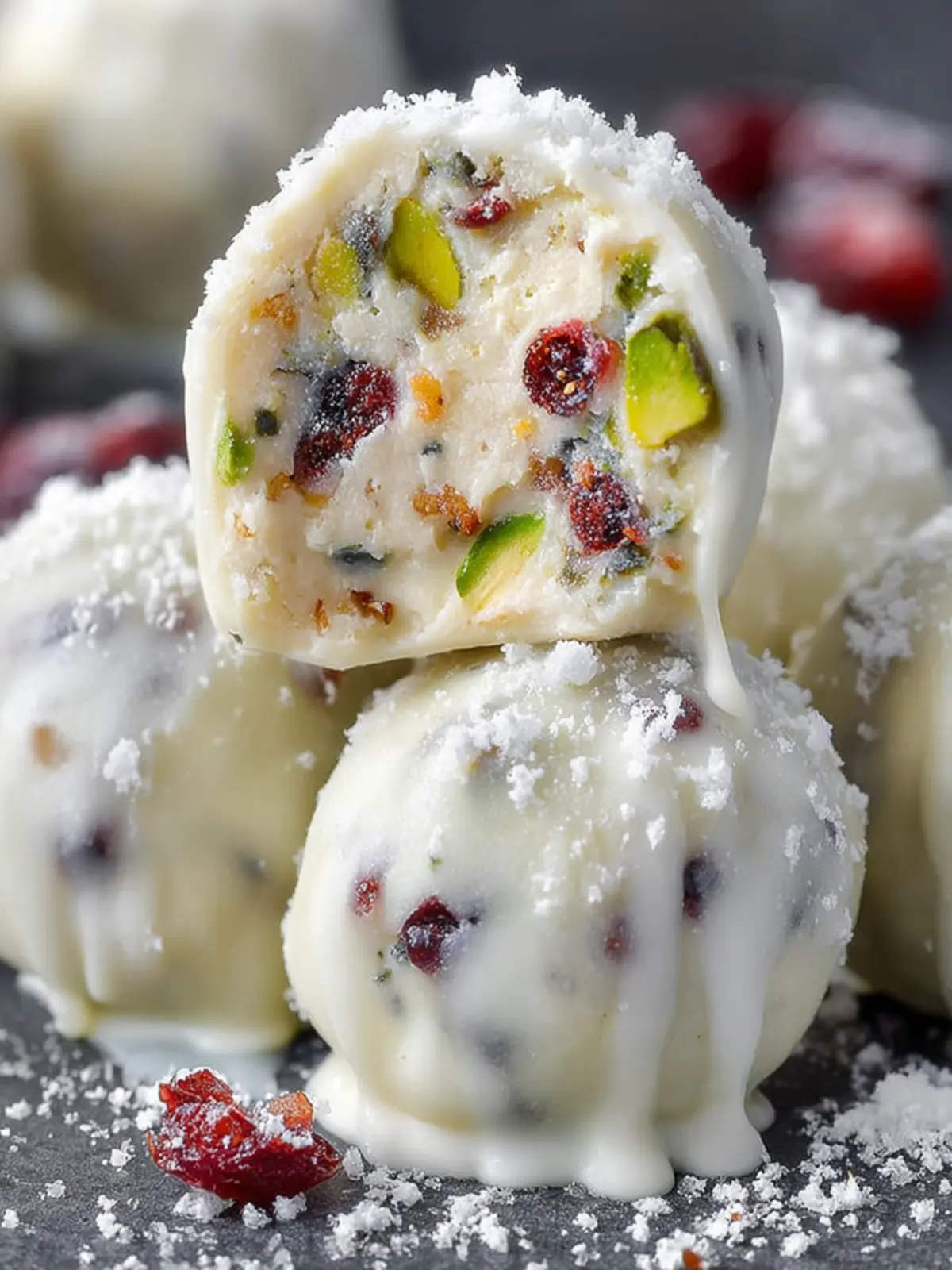 Embrace the festive season with these Cranberry Pistachio White Chocolate Truffles, and enjoy a delicious bite of joy!