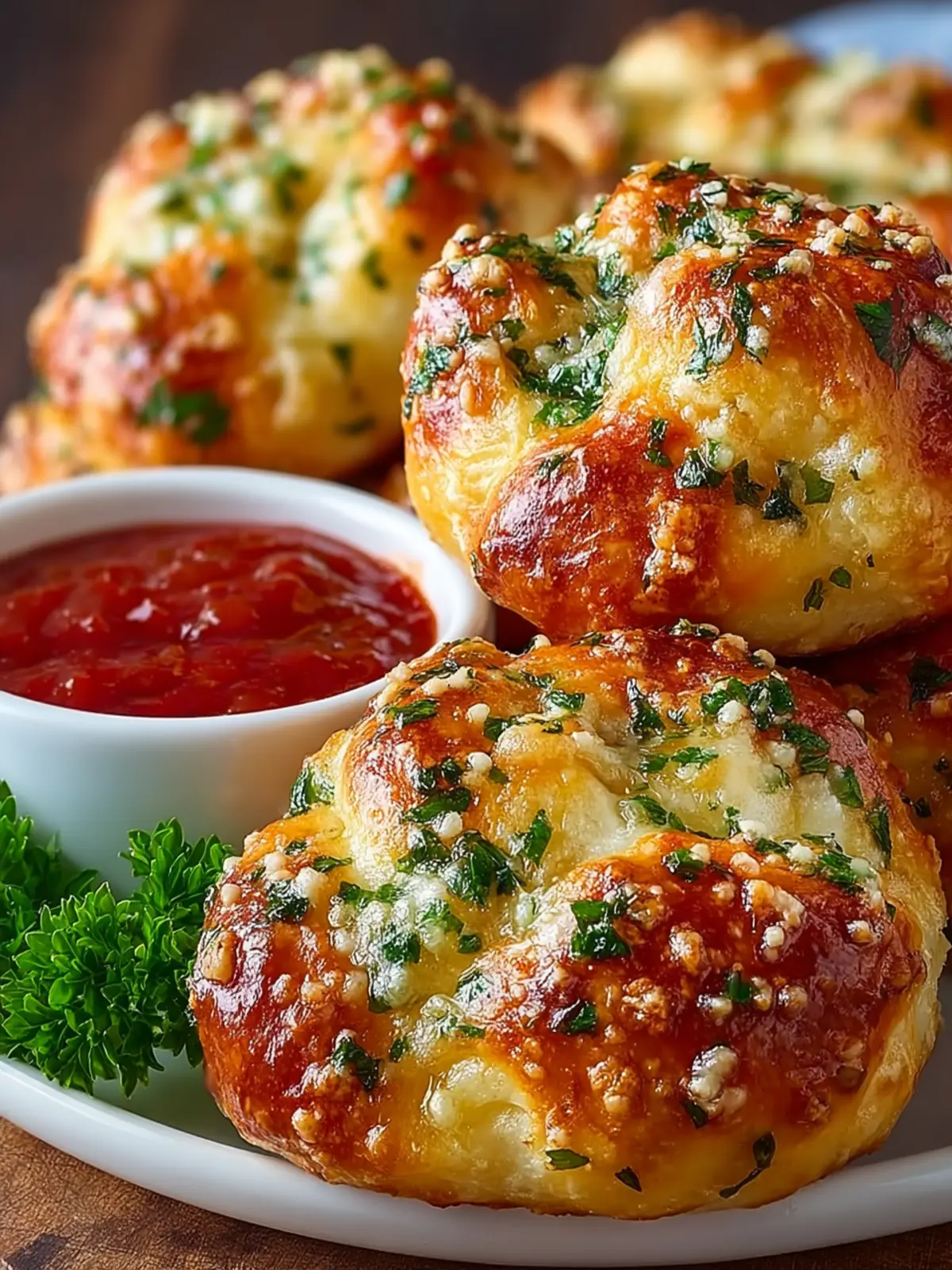 Parsley: A sprinkle of fresh parsley is a must for that pop of color and a hint of freshness. It complements the richness of the buttery garlic while adding a beautiful finish to the knots.