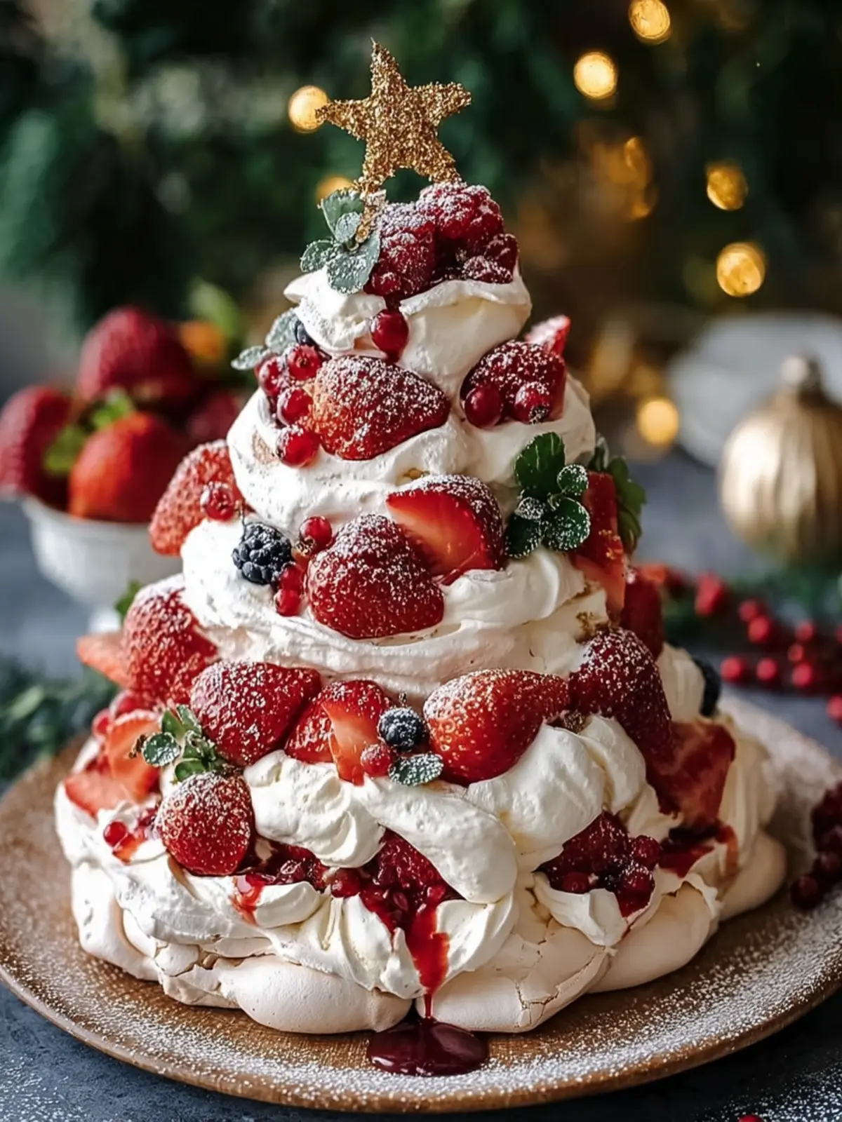 Festive Christmas Pavlova Tower: Irresistibly Light Delight!