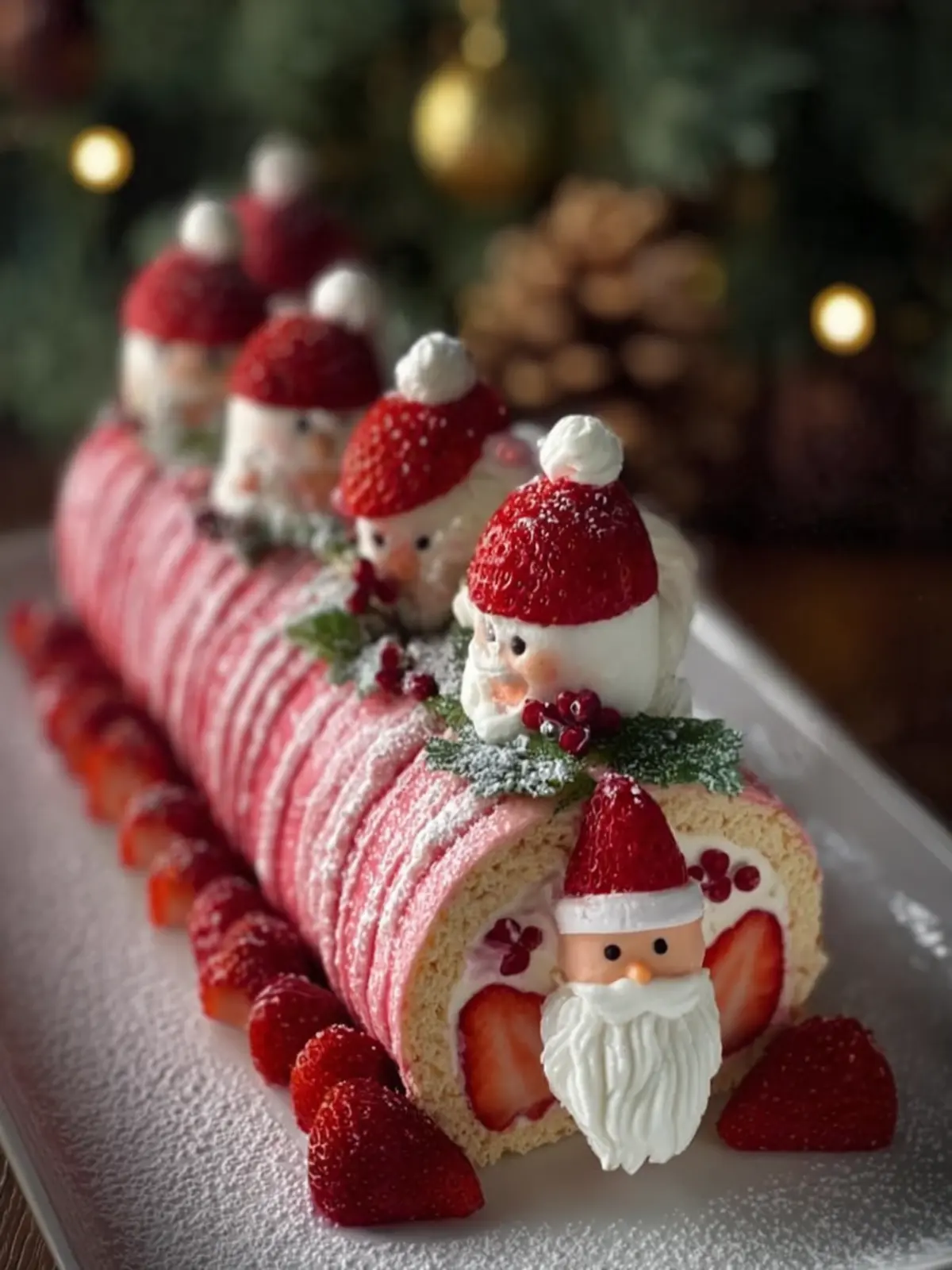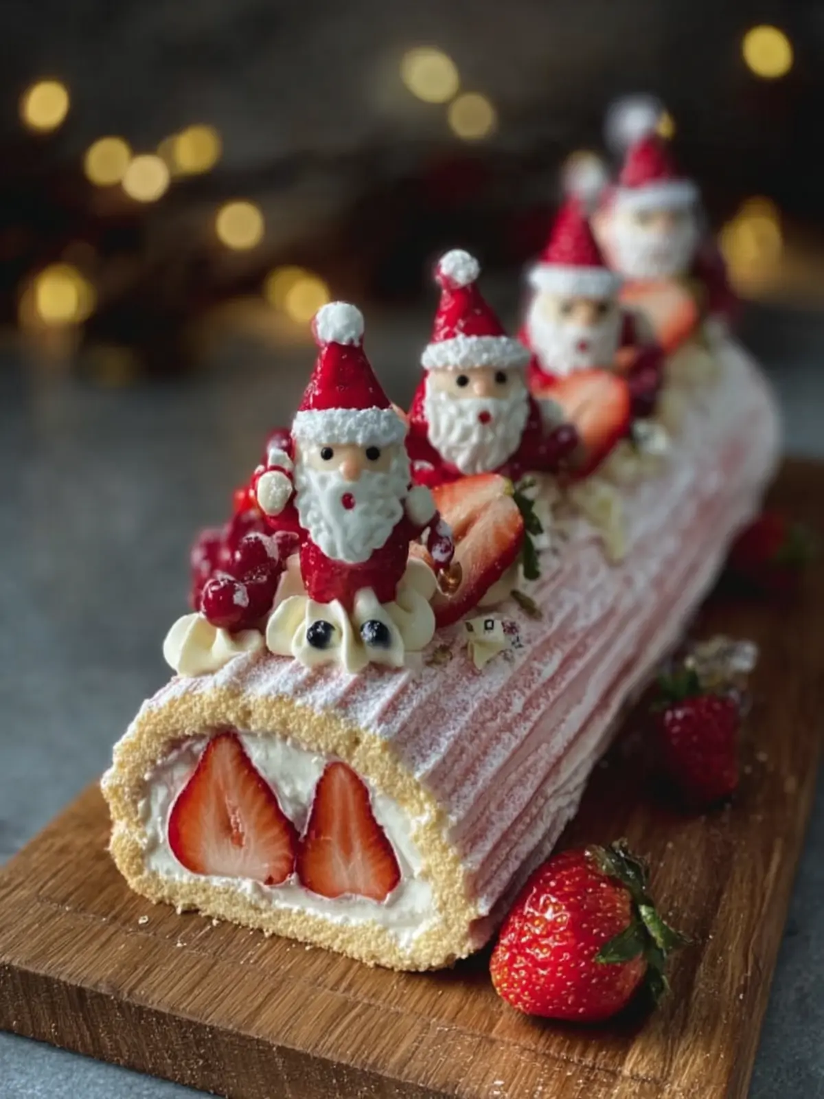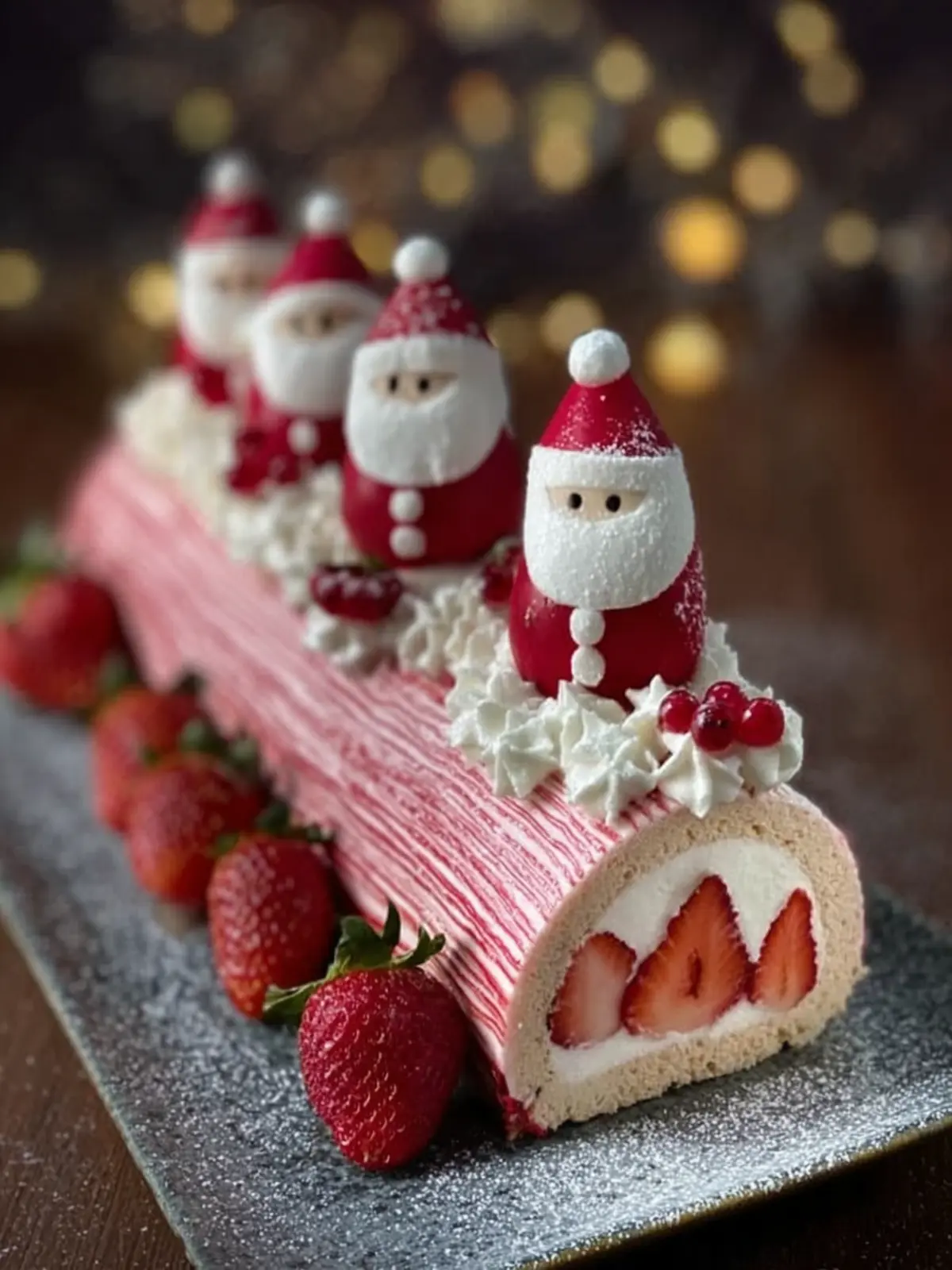 Festive Strawberry Santa Yule Log: Indulgent Holiday Delight