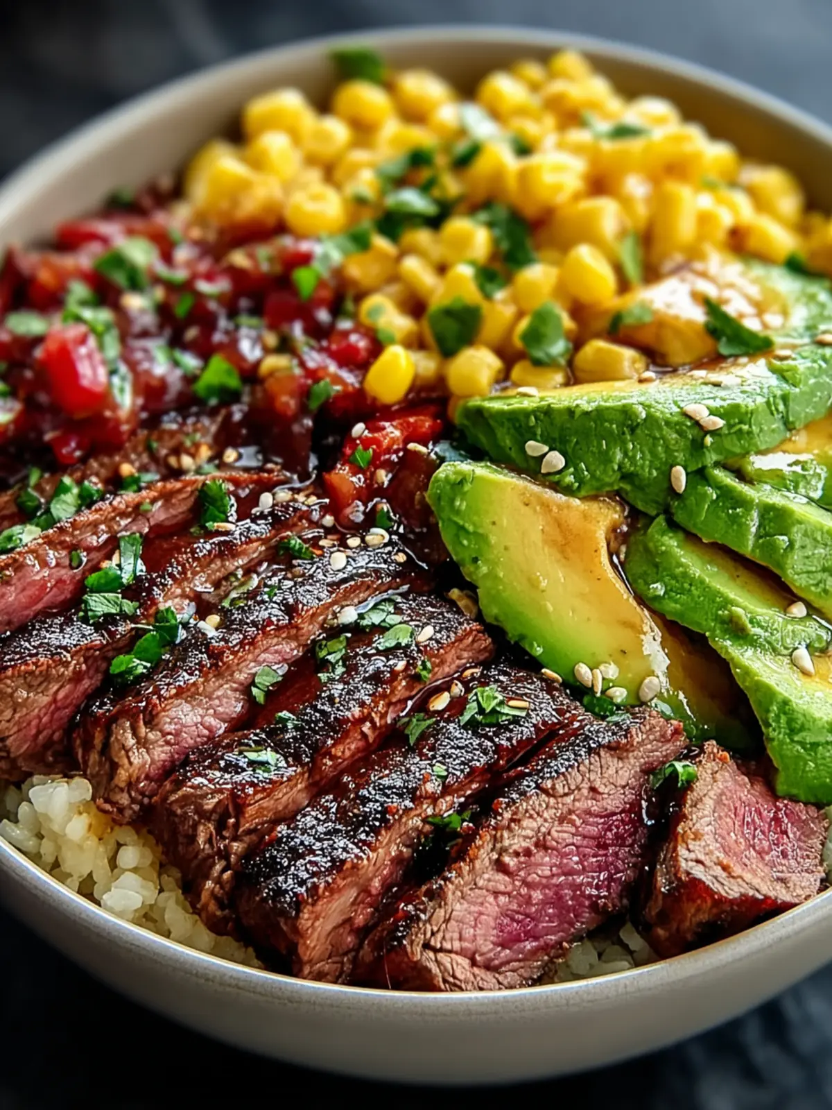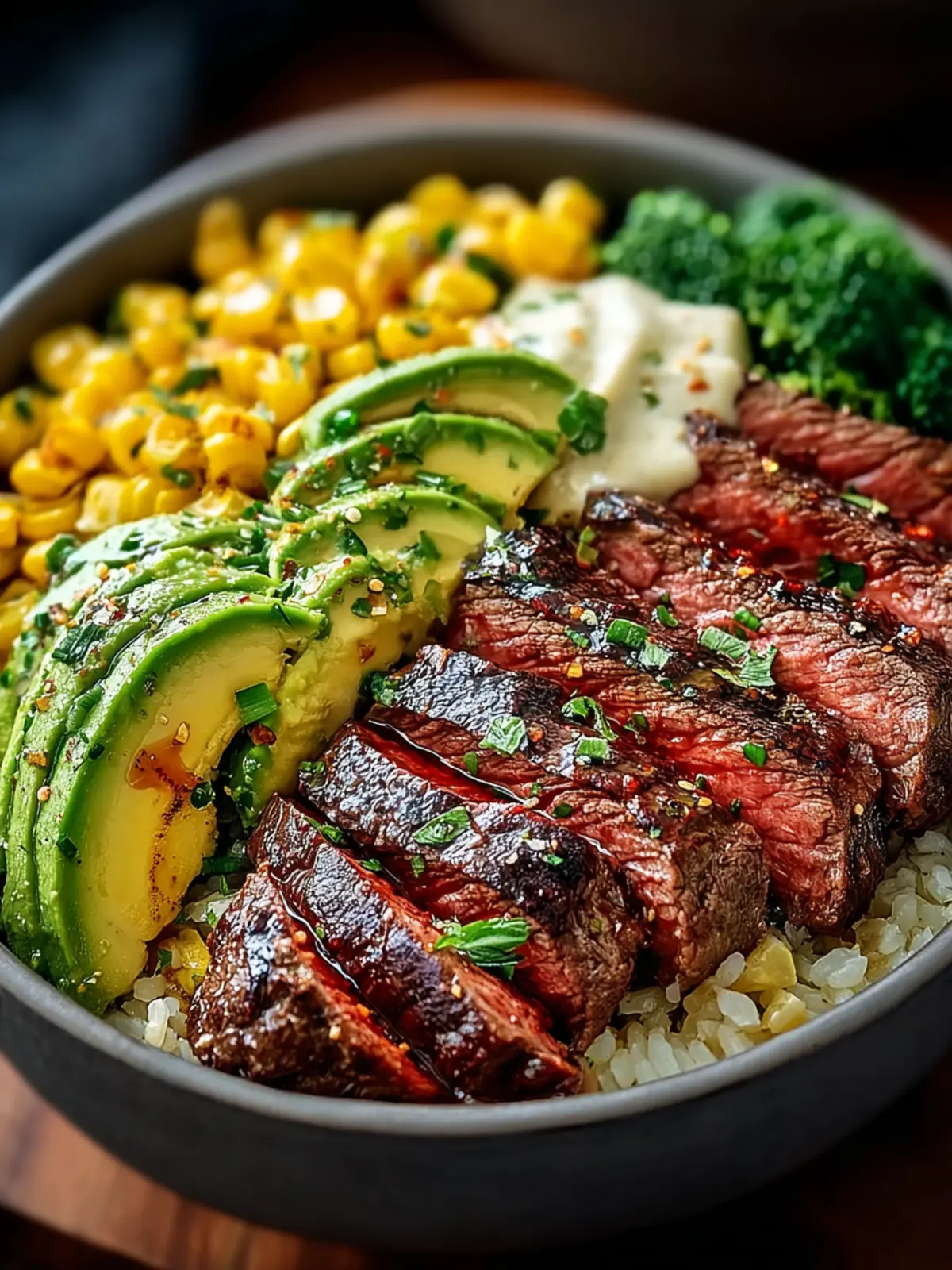 Nutritional Powerhouse: Each ingredient in this bowl brings its own benefits. Lean steak provides protein and iron, avocados offer healthy fats, and corn brings in fiber along with essential vitamins.