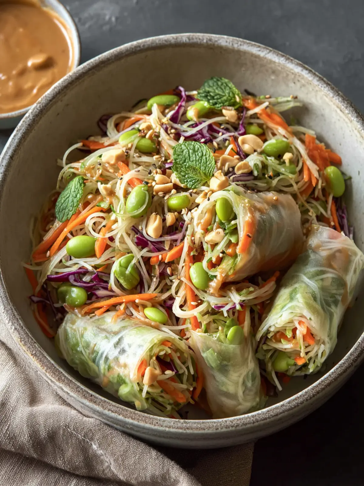 Fresh Spring Roll Bowl: Joyfully Loaded with Peanut Dressing