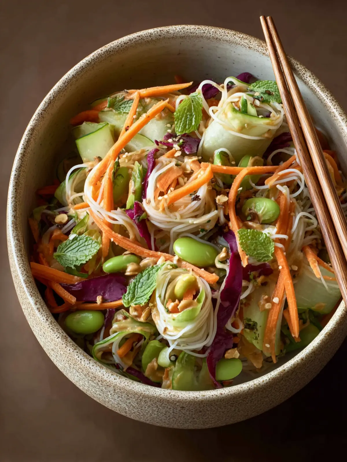 Rice Noodles: Thin rice noodles provide a delicate base for the bowl, making it feel hearty yet light. They’re quick to cook, and their soft texture pairs beautifully with the fresh vegetables and creamy dressing.
