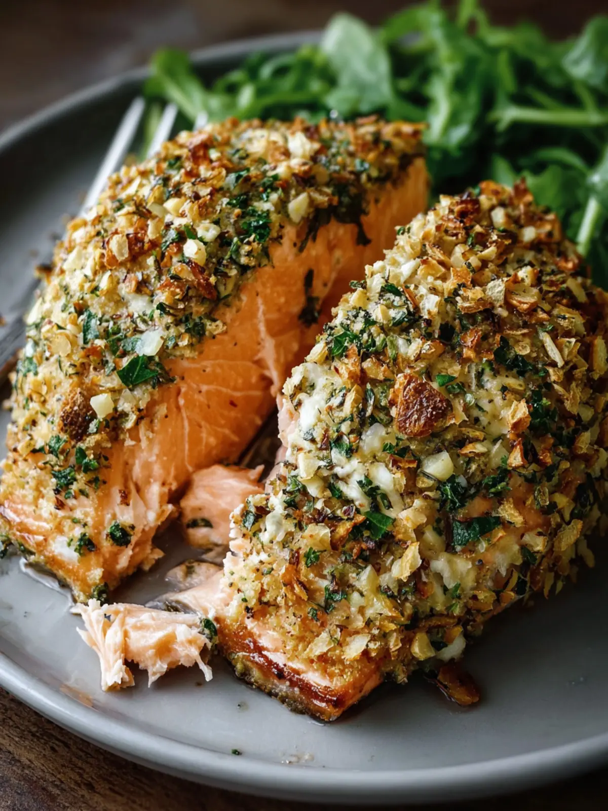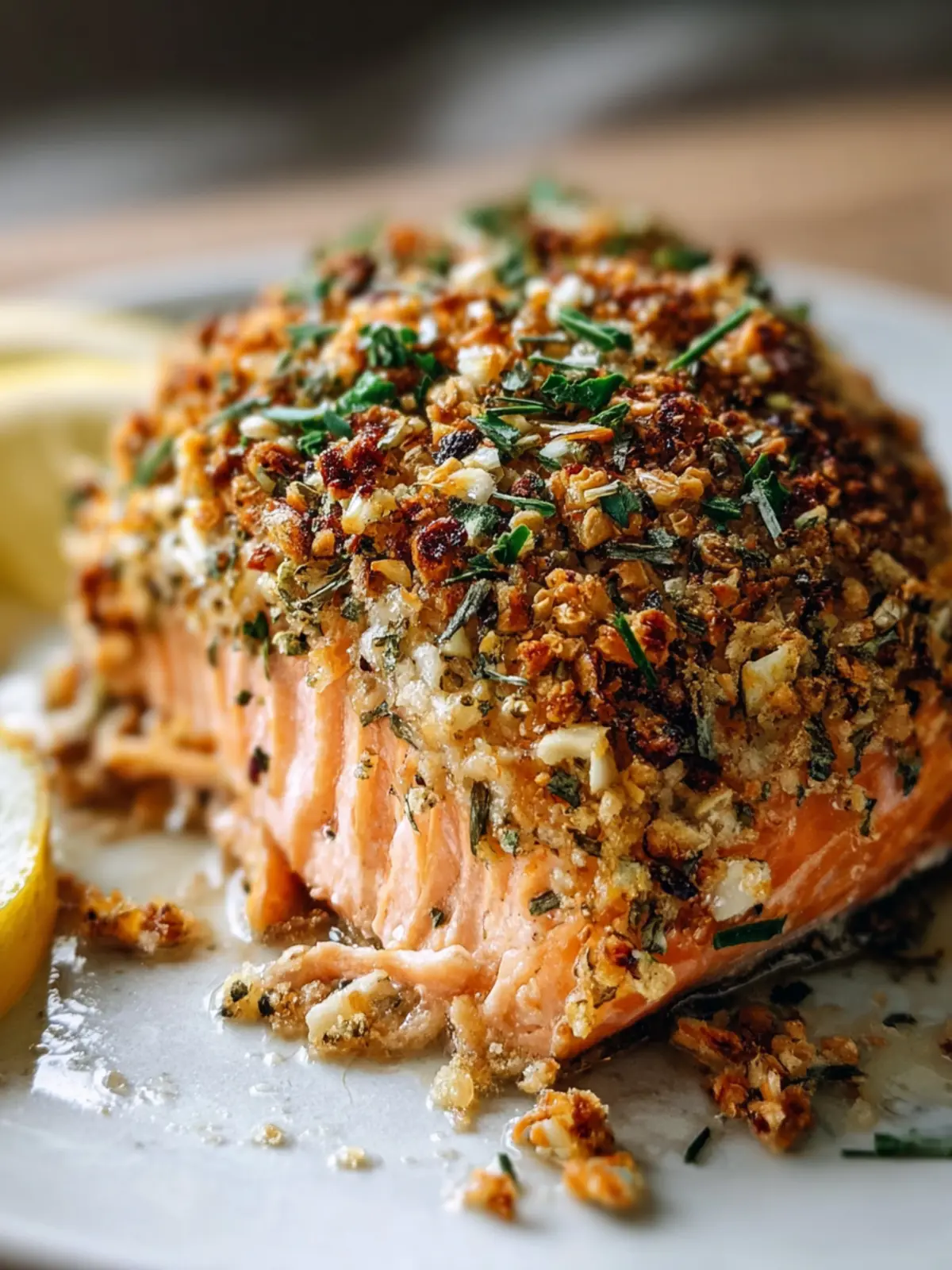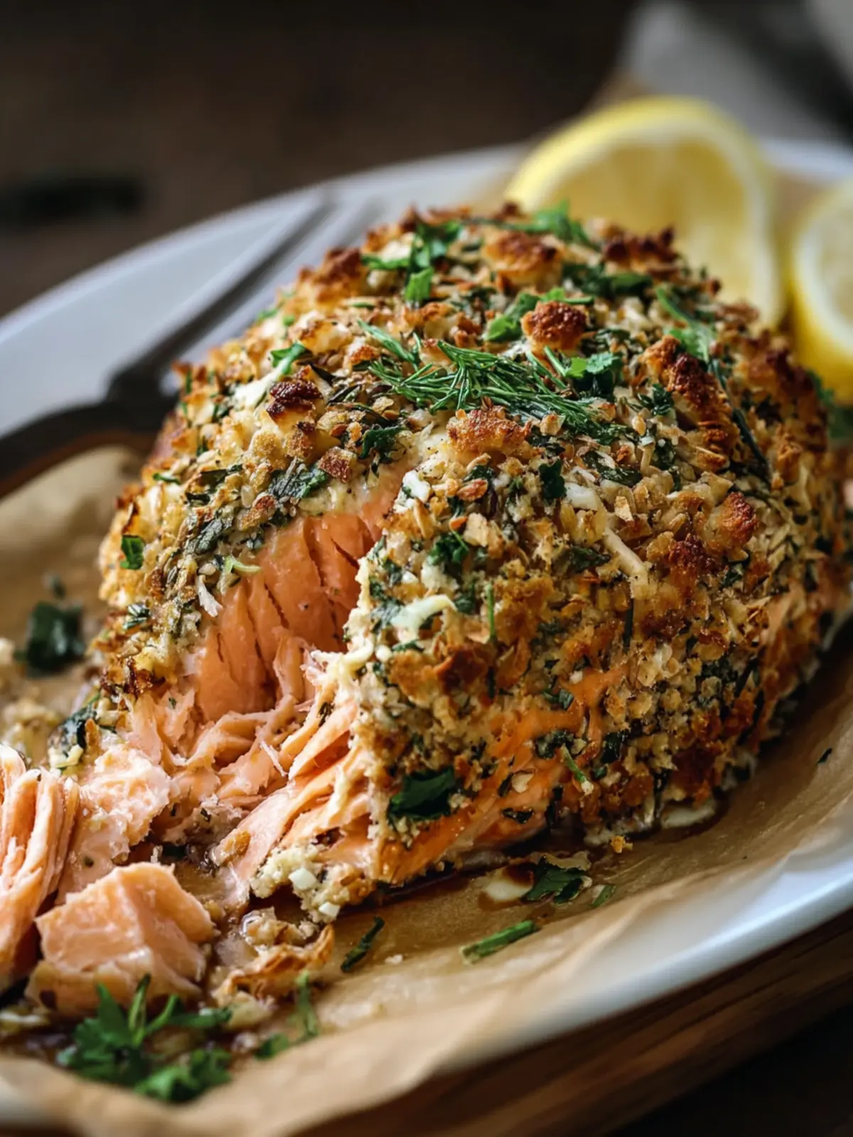 Flavor Explosion: The combination of herbs brings a fresh, aromatic quality that elevates the natural richness of the salmon. Fresh herbs such as parsley, dill, and thyme create a bright and flavorful crust that contrasts beautifully with the tender fish.
