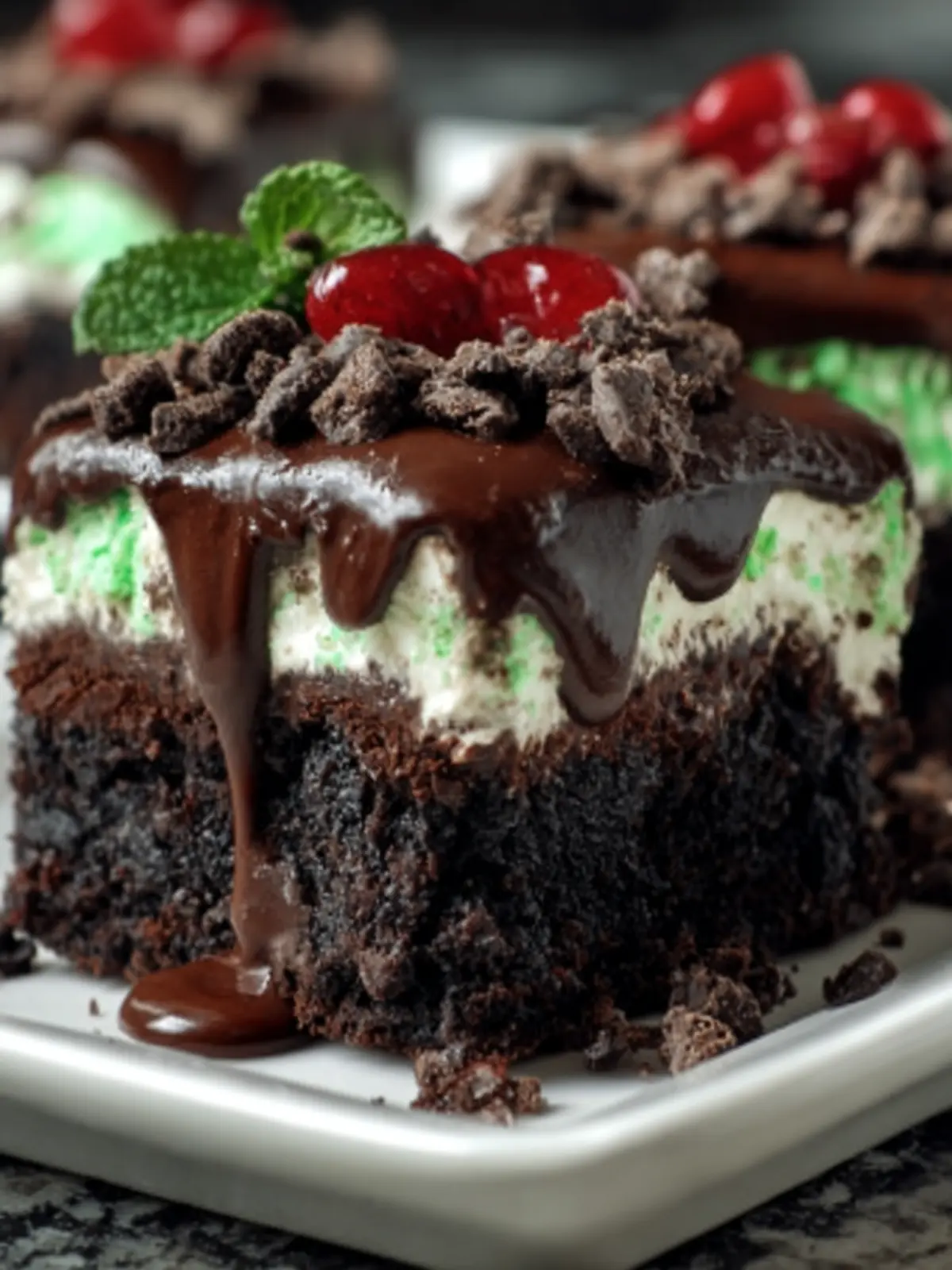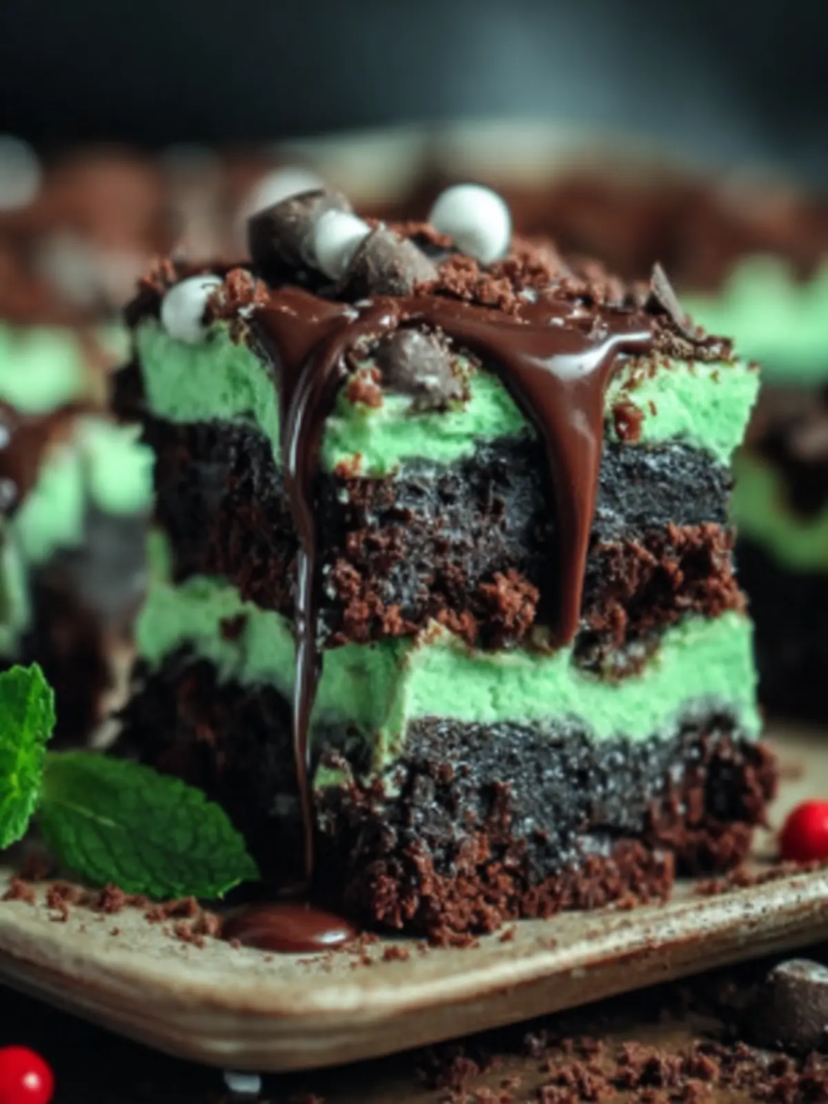 A delicious mint-chocolate brownie recipe featuring layers of mint frosting, chocolate chips, and crushed cookies.