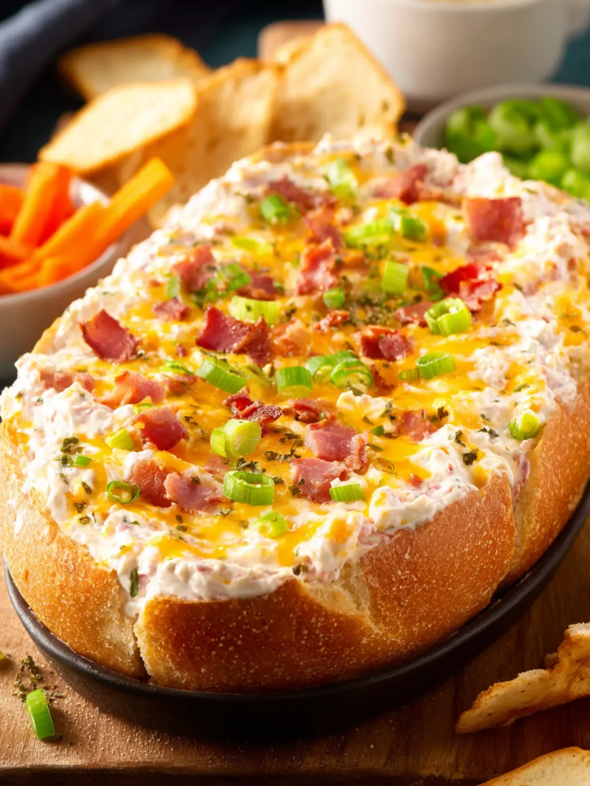Serving Style: Present your dip in a warm, oven-safe dish. The gooey cheese on top will allure your guests to dive right in. A sprinkle of chives or parsley on top adds a nice touch and color.