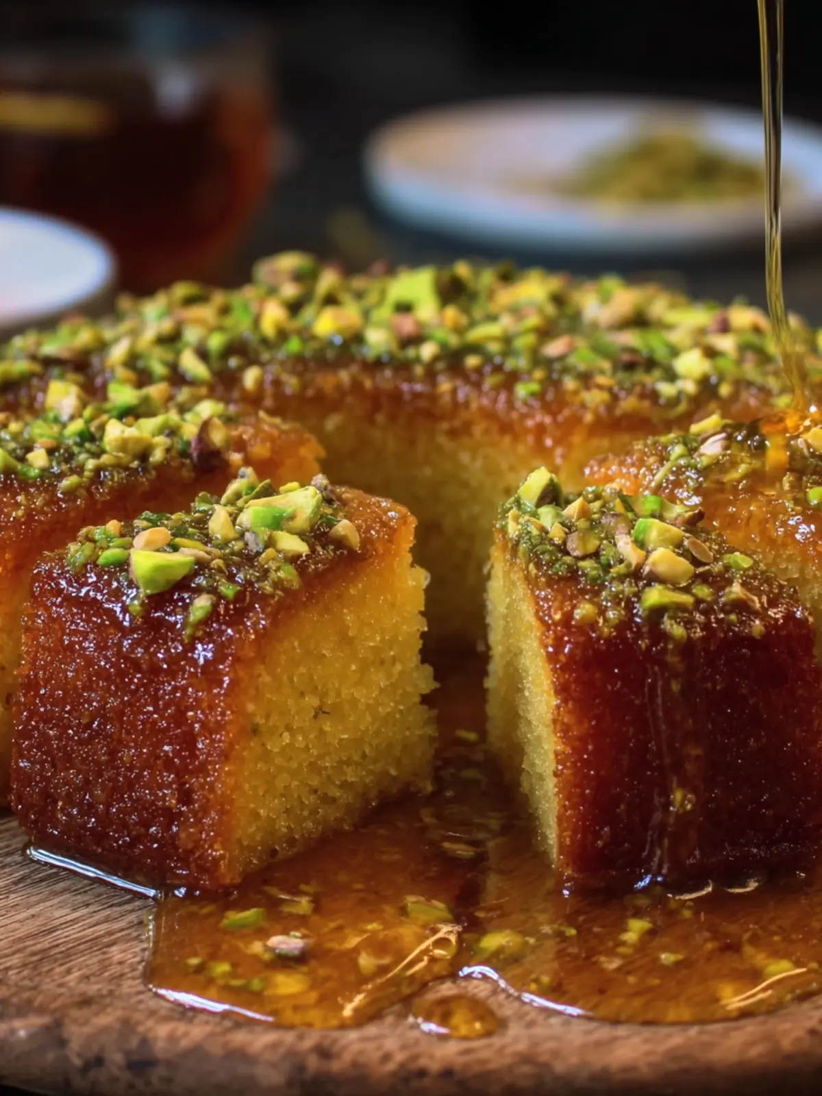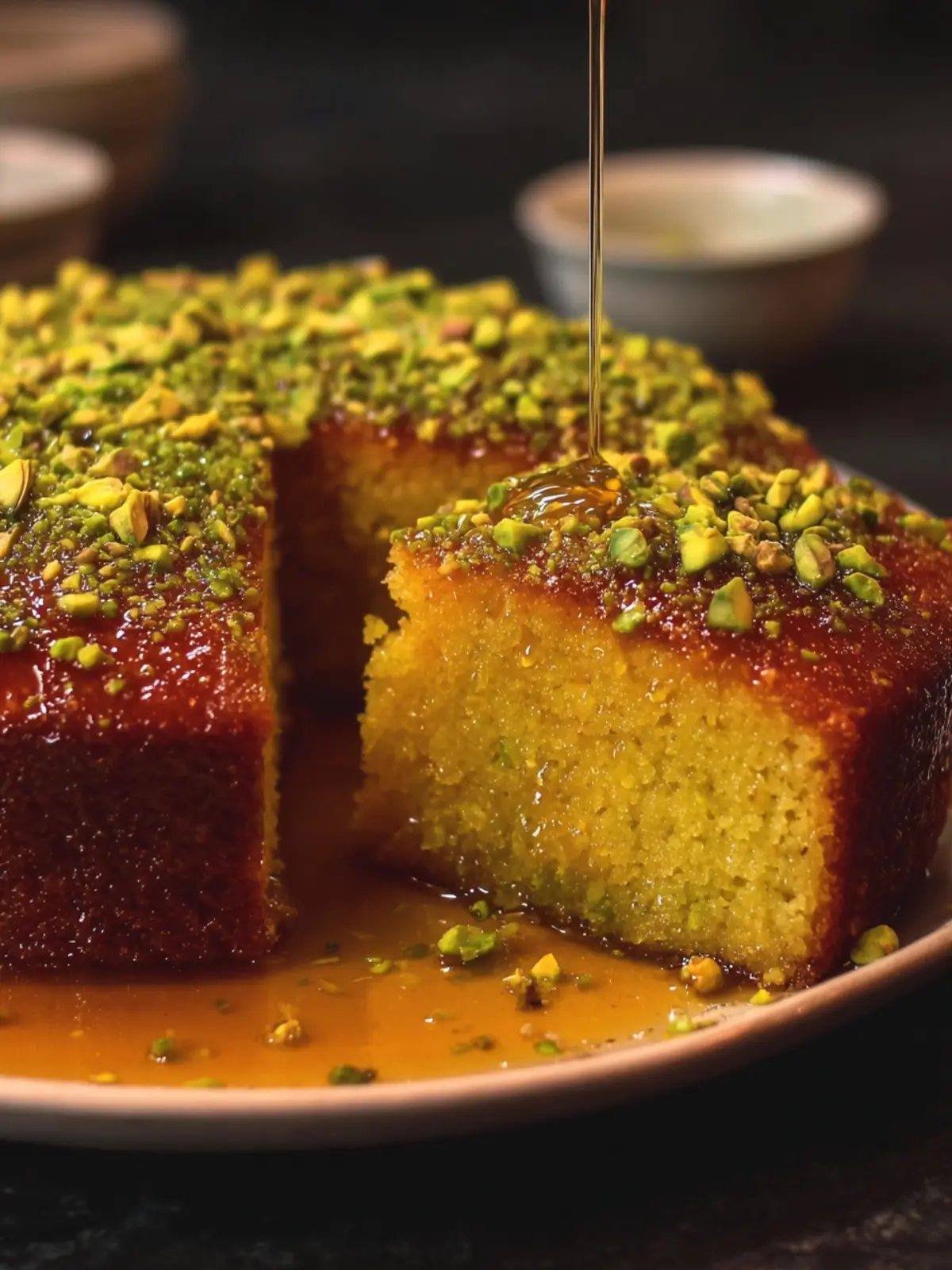 A rich and flavorful pistachio syrup cake soaked in a delightful syrup.