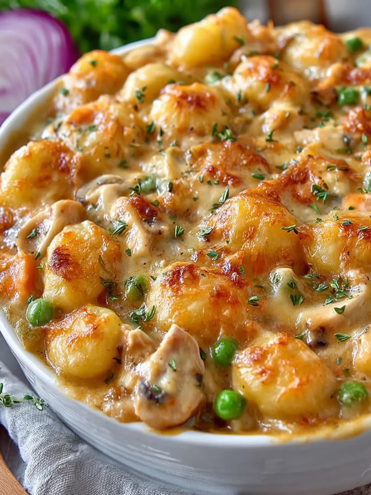 Gnocchi: To achieve that perfect pillowy texture, consider using fresh gnocchi if you can find it. They have a delightful chew that frozen gnocchi sometimes lacks. Should you want to experiment, you can substitute gnocchi with small pasta shapes like orzo or mini shells, which work equally well in a hearty pot pie.