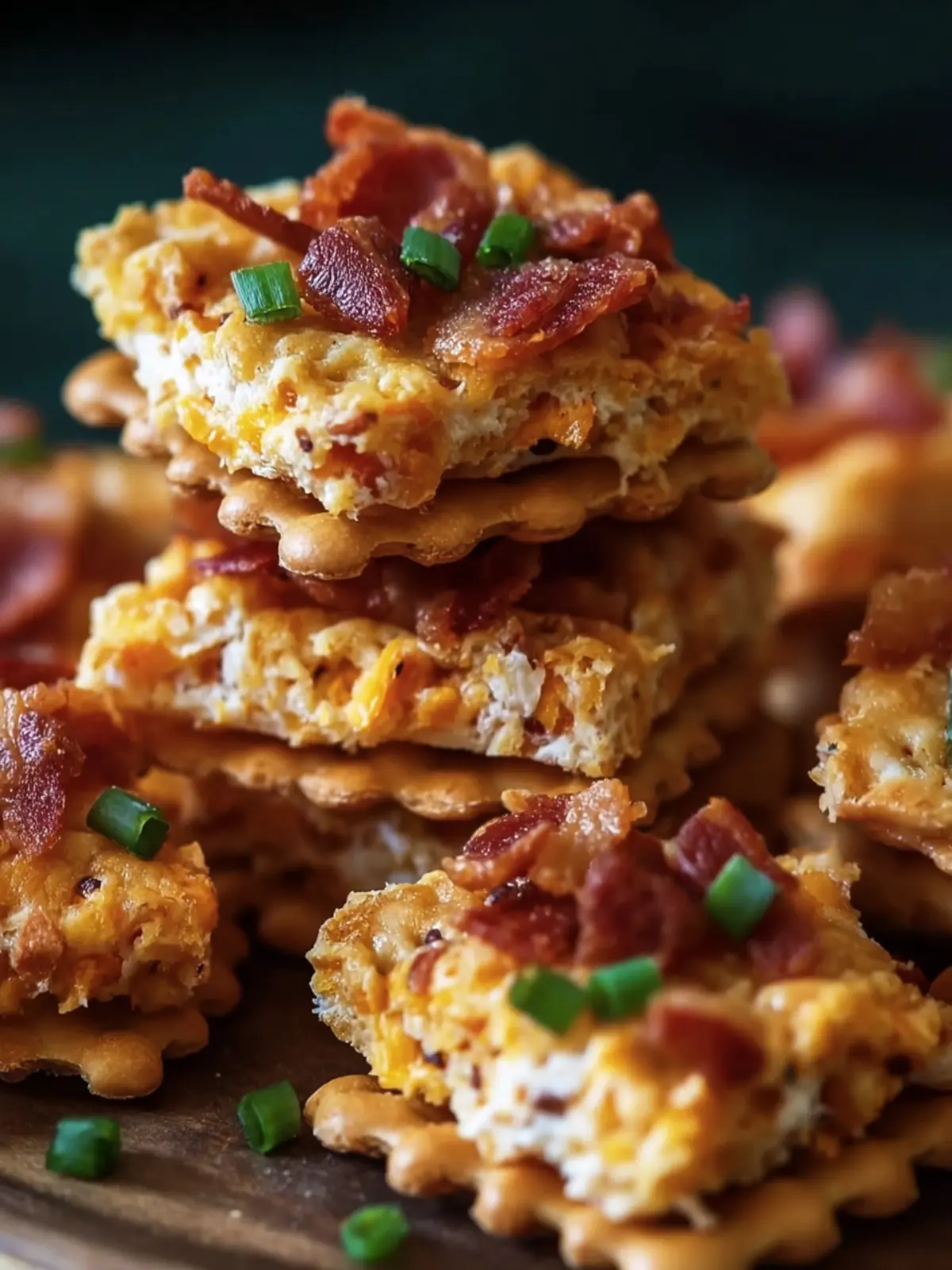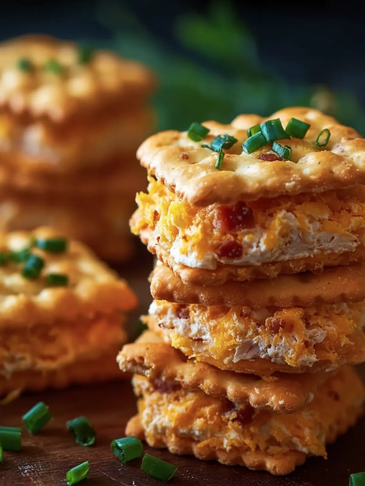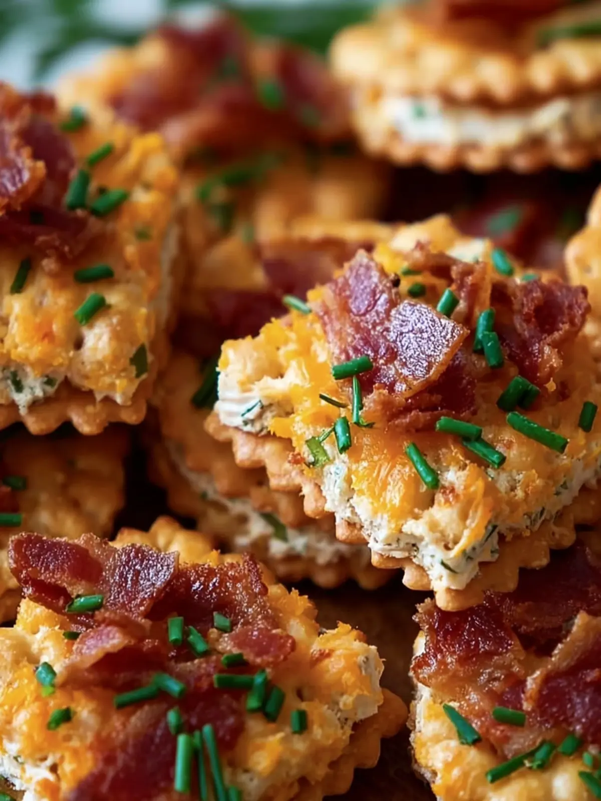 These savory bacon cheese crackers are a quick and delicious snack that combines buttery crackers with a creamy filling of bacon and cheese.