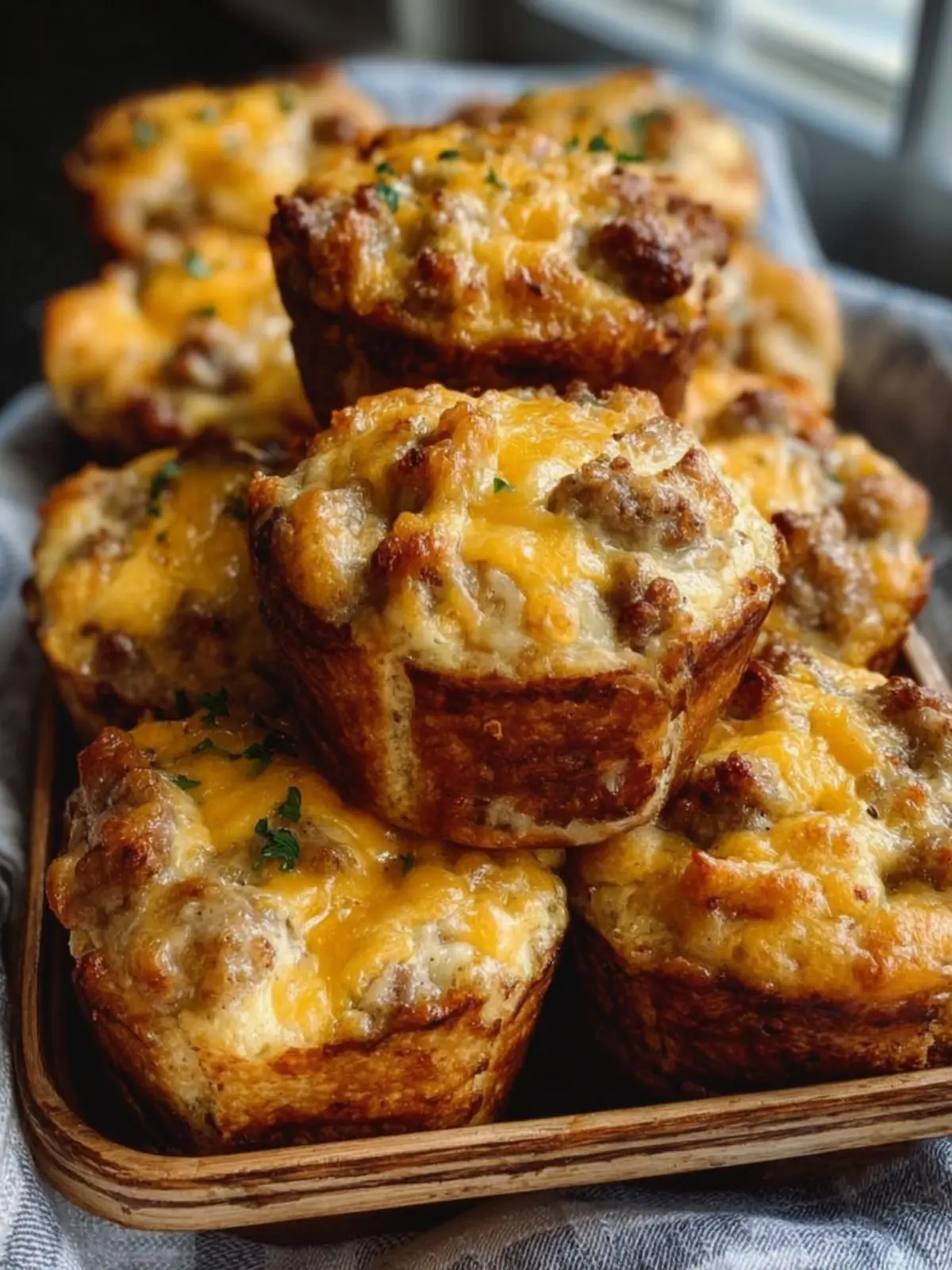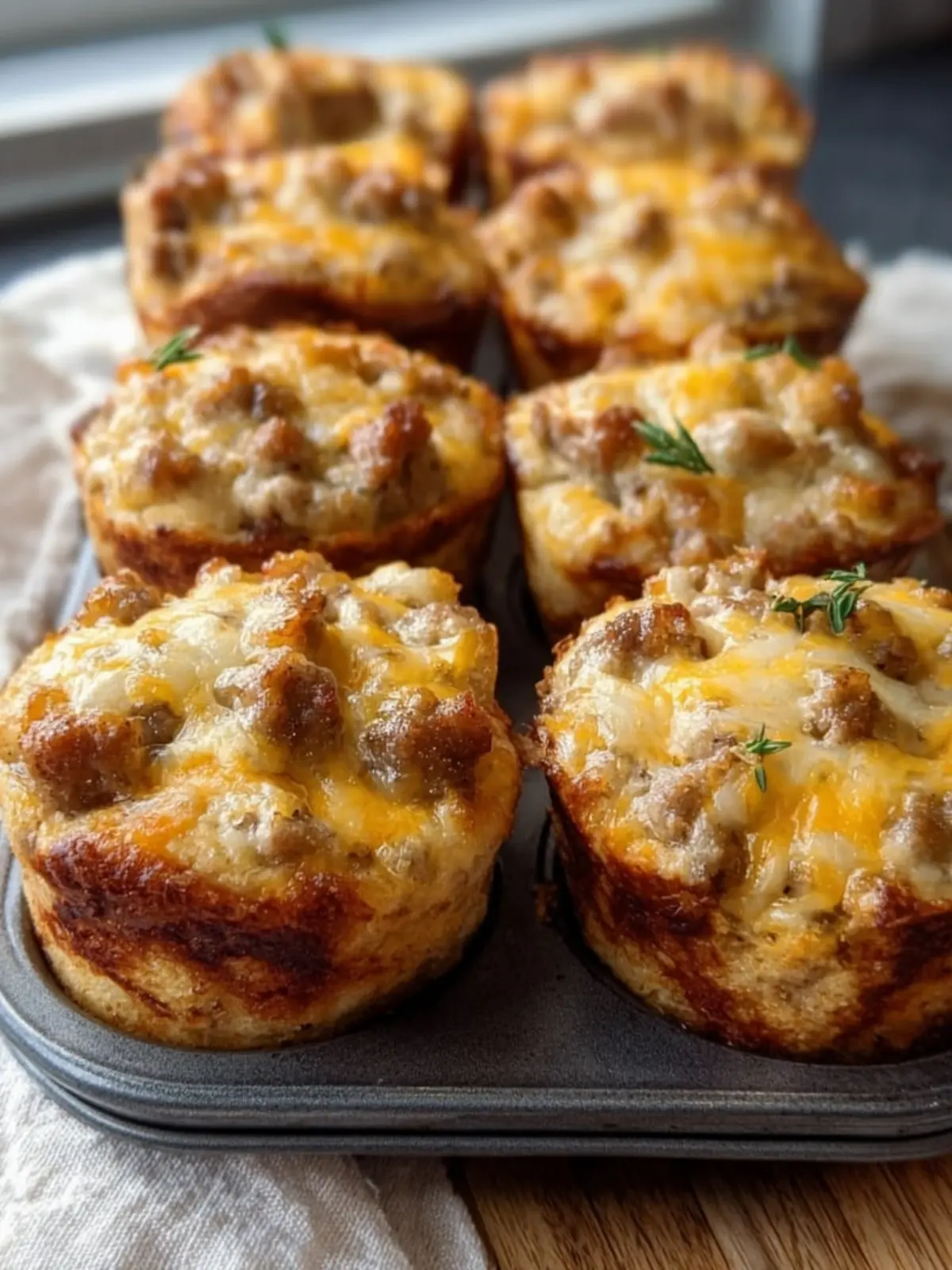 Deliciously cheesy and savory muffins made with ground sausage and packed with flavor.