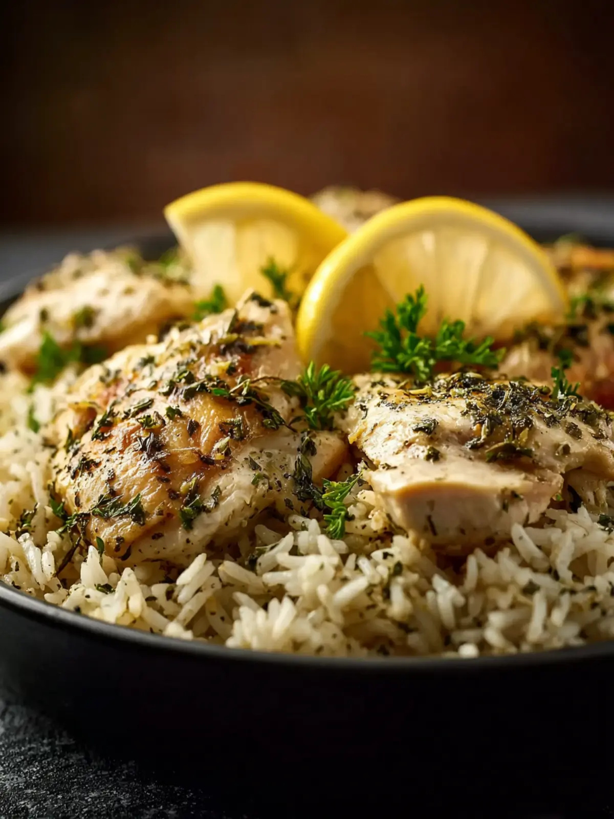 • The result is tender, juicy chicken nestled into soft, herb-infused rice with a gentle citrus aroma rising from the bowl.