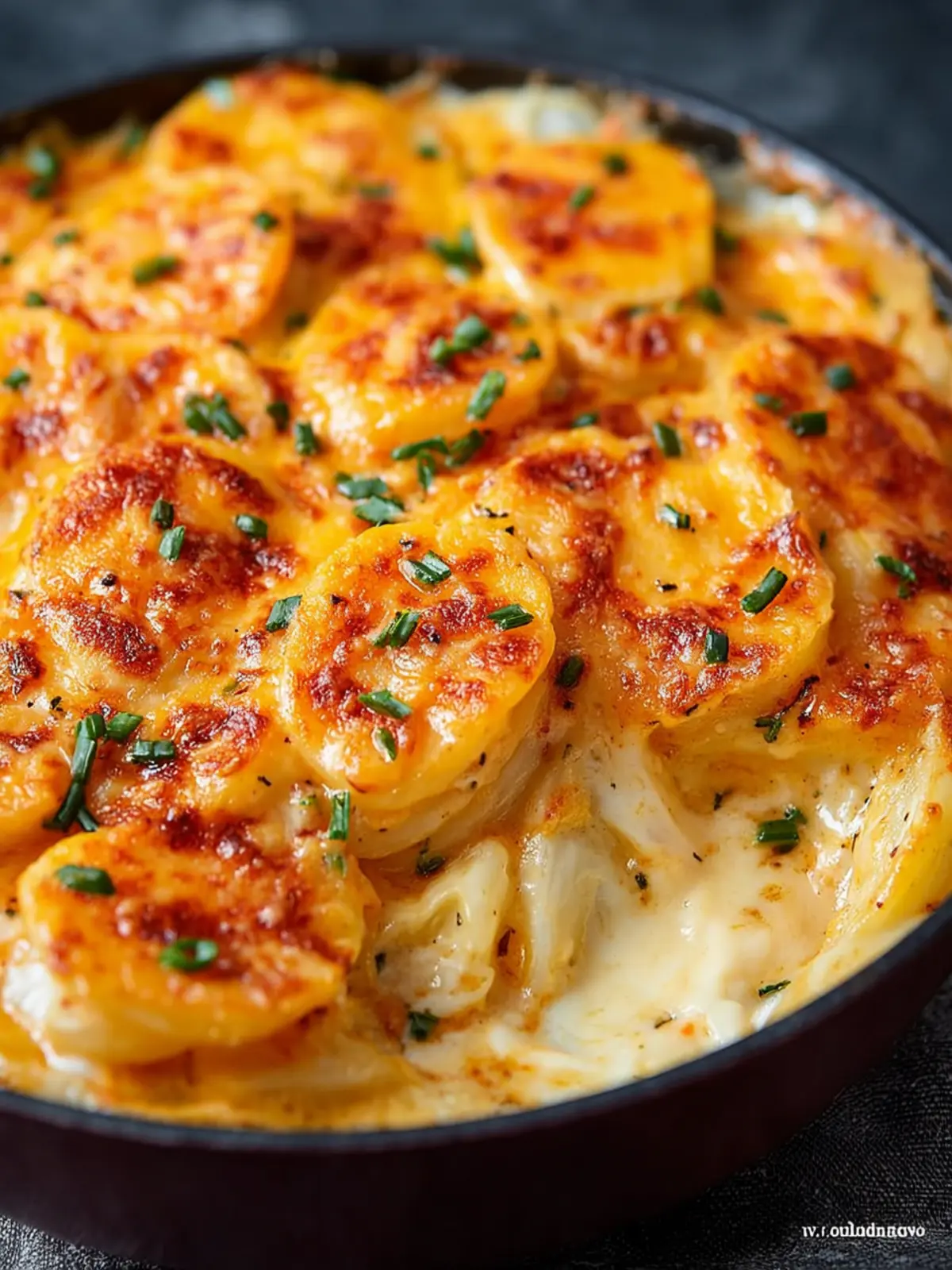 A comforting and creamy cheesy potato bake that is perfect for any occasion.