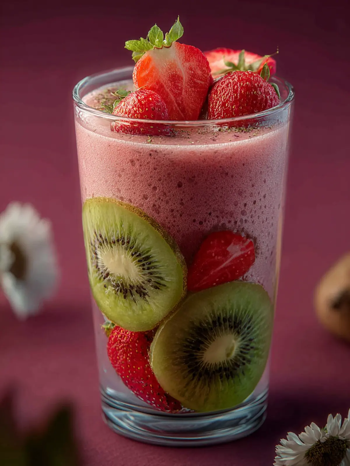 What makes this smoothie so refreshing and delightful? Well, let’s start with the ingredients. Strawberries, bursting with juicy sweetness, are not just tasty; they are also loaded with antioxidants and vitamins, making them a nutritional powerhouse. The banana adds creaminess and a natural sweetness, helping to balance the tartness of the kiwi, which is packed with vitamin C. Together, these fruits form a nutritional trifecta that not only tantalizes your taste buds but also nourishes your body.