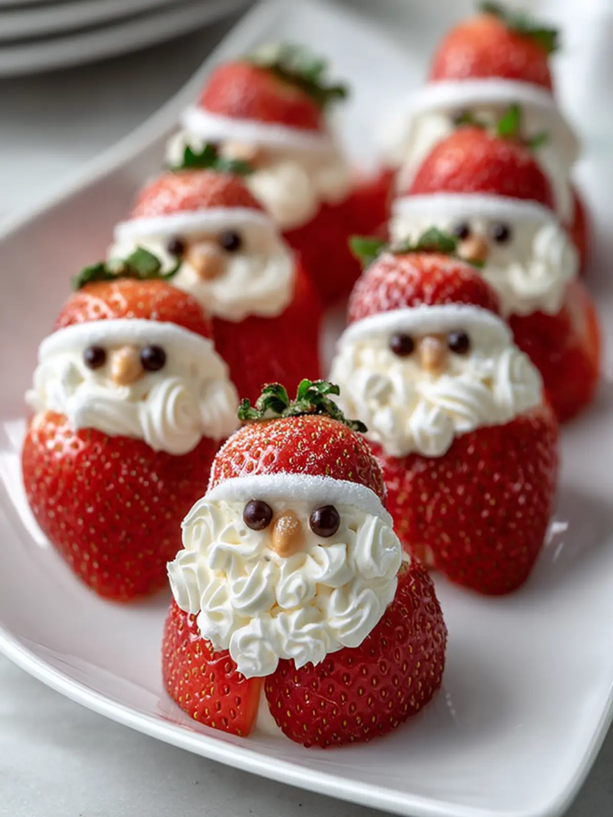 Nutritional Benefits: Unlike many traditional holiday sweets, these strawberry Santa figures are low in calories and high in vitamins. Strawberries are rich in vitamin C, fiber, and antioxidants, making them a guilt-free indulgence.