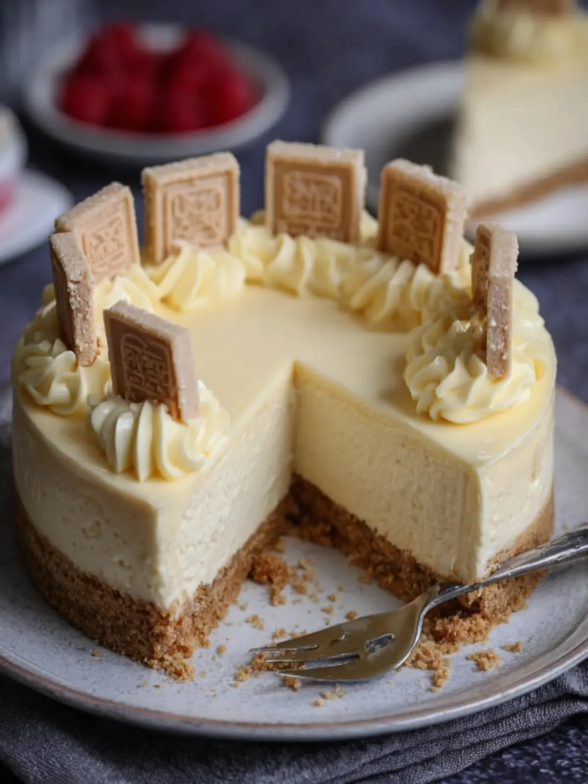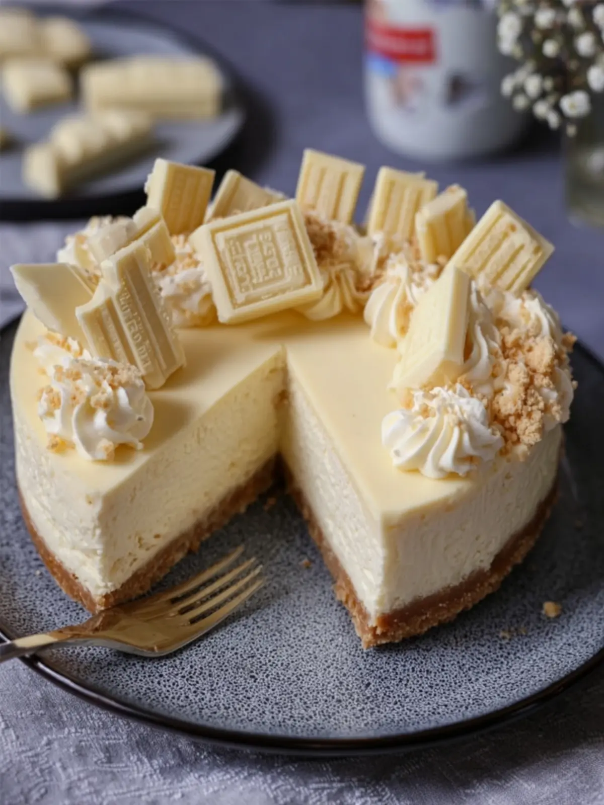 A creamy and decadent cheesecake made with vanilla and white chocolate, perfect for any occasion.